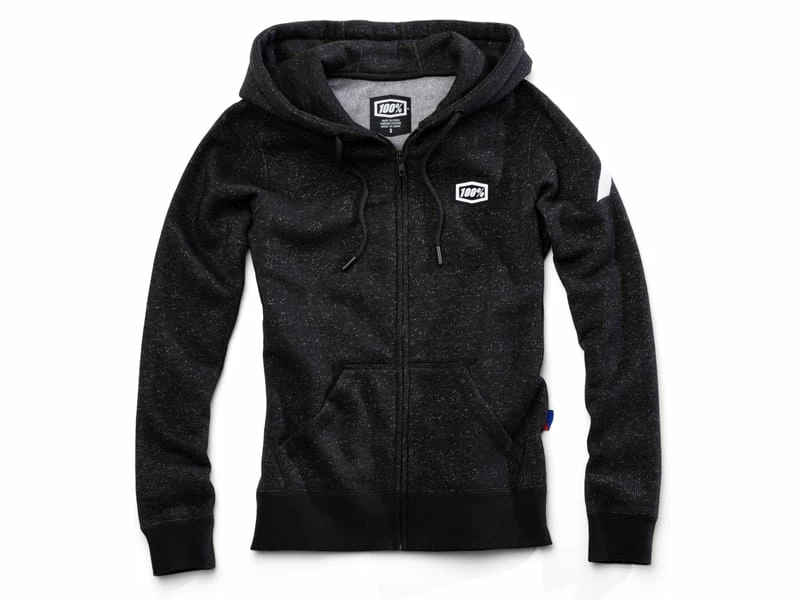 Le sweat à capuche à fermeture éclair Cosmic pour femme se présente dans un tissu chiné noir et blanc chic et une capuche