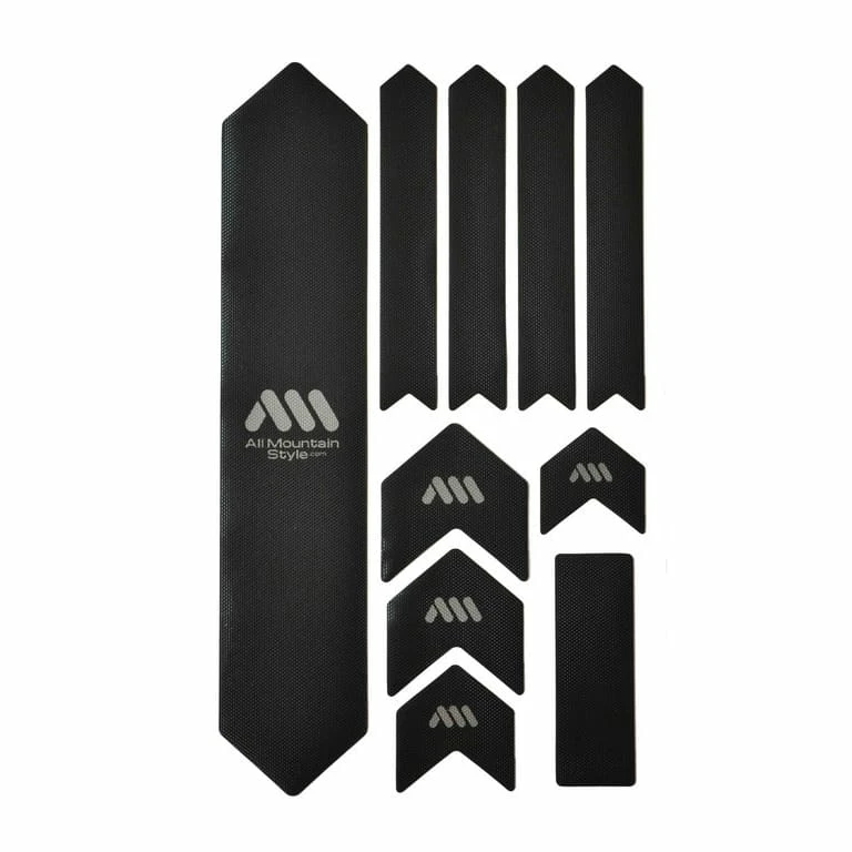 La protection idéale pour votre cadre. Les films d’All Mountain Style sont fabriqués en PVC semi-rigide, auto-adhésif et très stable. La structure en nid d’abeille leur confère une surface supplémentaire résistante aux chocs et à l’abrasion. Les différentes pièces moulées peuvent également être appliquées à des formes de cadre complexes et contribuer à protéger votre vélo bien-aimé contre les dommages.