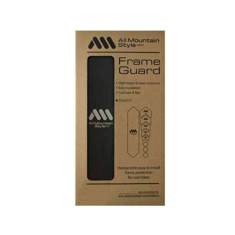 La protection idéale pour votre cadre. Les films d’All Mountain Style sont fabriqués en PVC semi-rigide, auto-adhésif et très stable. La structure en nid d’abeille leur confère une surface supplémentaire résistante aux chocs et à l’abrasion. Les différentes pièces moulées peuvent également être appliquées à des formes de cadre complexes et contribuer à protéger votre vélo bien-aimé contre les dommages.