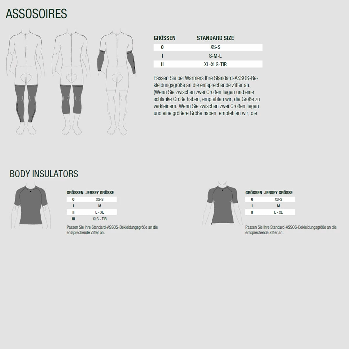 - Tailles : 0 (XS/S) – I (S/M/L) – II (XL/XLG/TIR)
