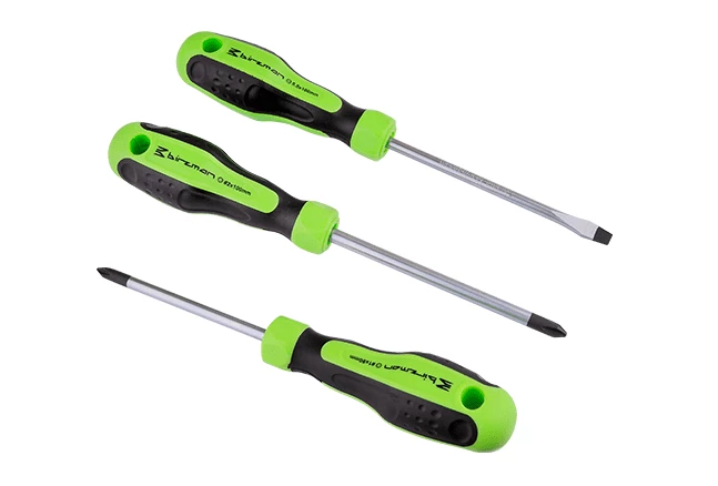 Jeu de tournevis 3 pièces avec une manipulation confortable grâce à un manche ergonomique et un revêtement antidérapant.