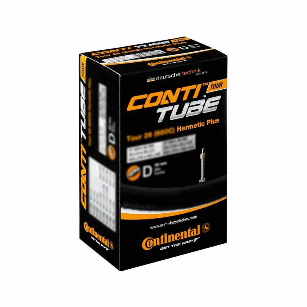 Continental offre également un standard de qualité très élevé pour ses tubes. La version Hermetic vous offre une plus grande sécurité et une moindre susceptibilité aux crevaisons avec moins de pompage.