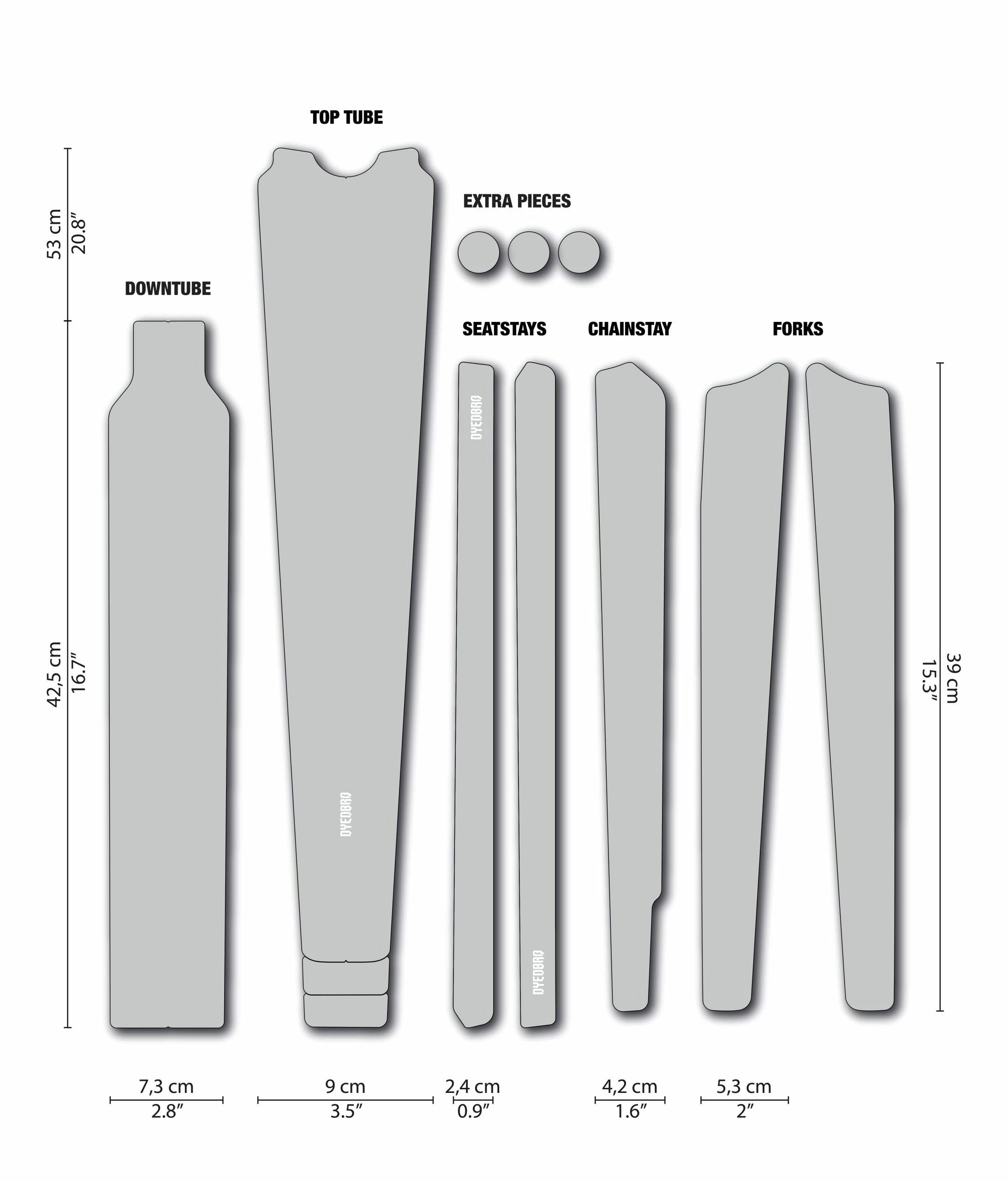 - Conçu pour protéger le tube supérieur, le tube diagonal, la fourche, les haubans et les bases avec un total de 12 pièces