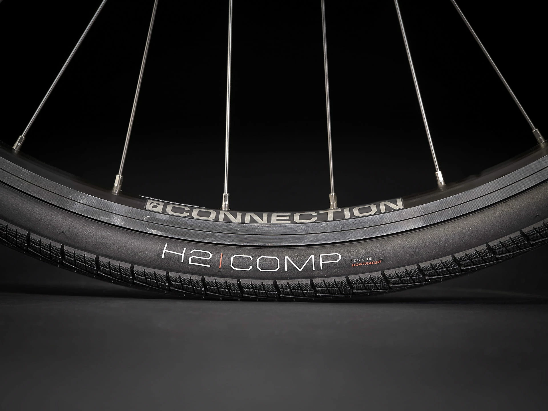 Pneus: Bontrager H2 Comp, tringle à fils, 30 TPI, 700 x 35CMax. Taille des pneus: 38C sans garde-boue, 35C avec garde-boue