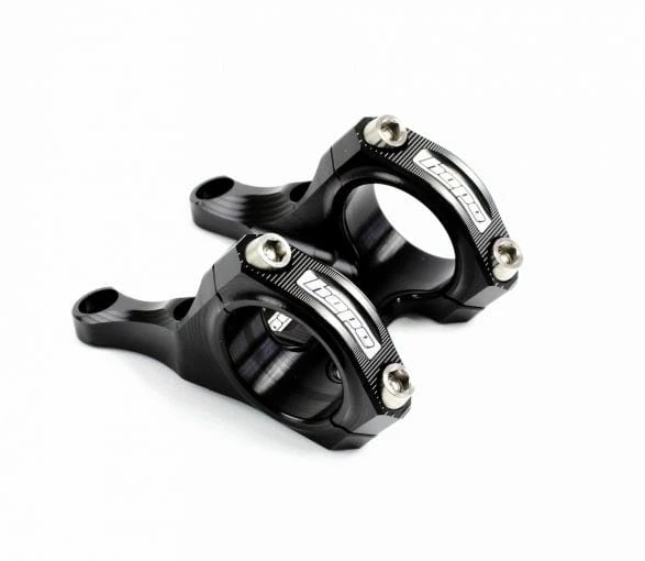 La nouvelle potence Direct Mount de Hope, en noir, permet de garder l’avant plat et le poids réduit.
