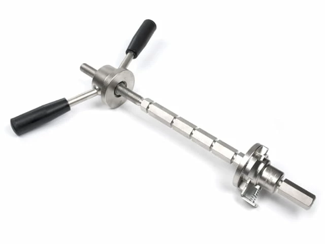 - Les poignées extralongues (30 cm) offrent un bon levier et les inserts gradués assurent un alignement précis des cuvettes de roulement